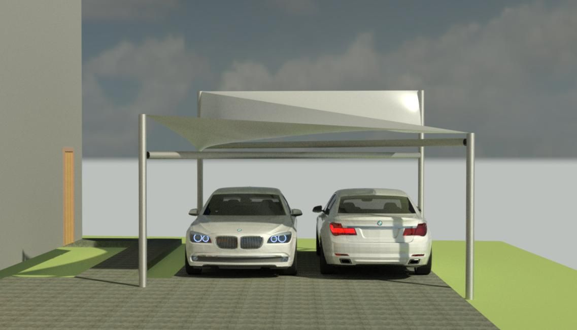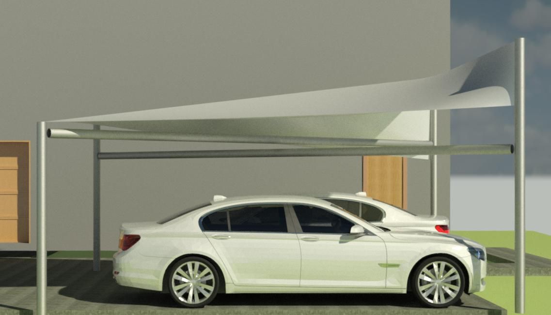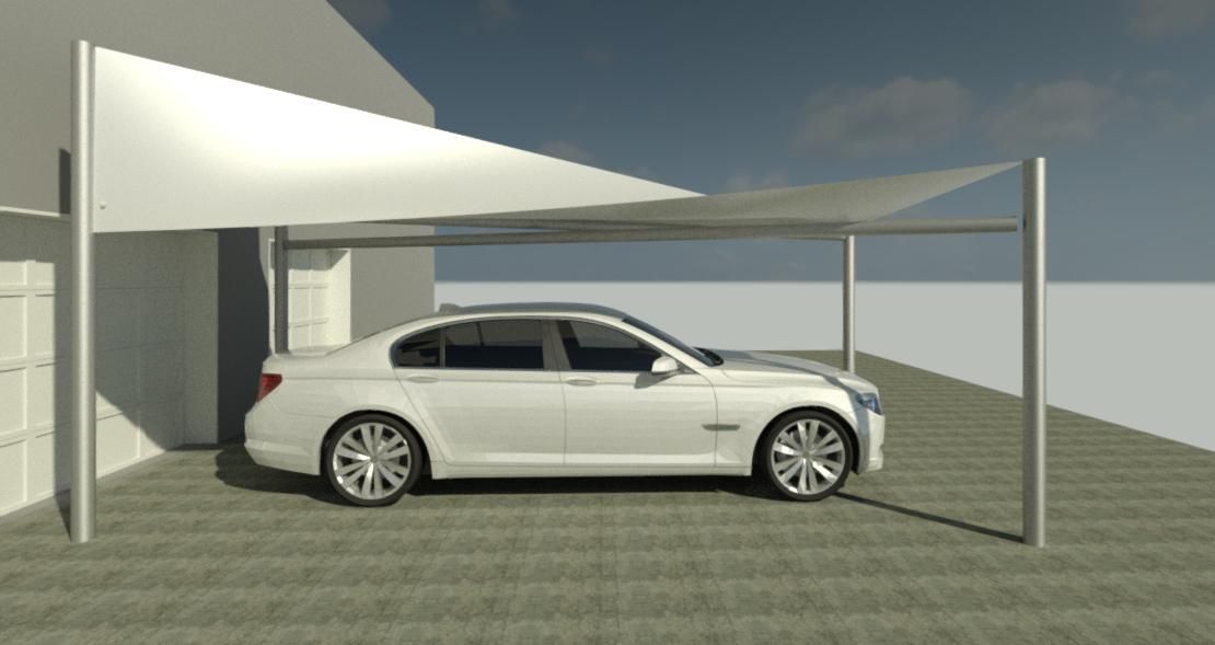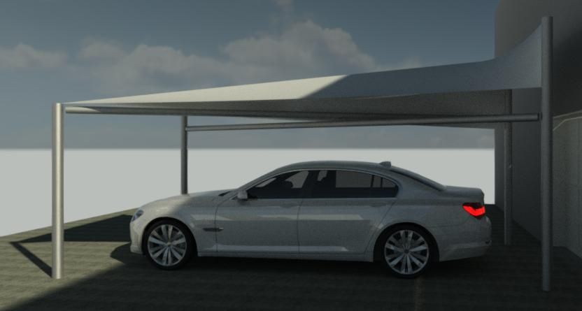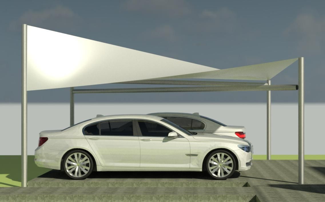 Bimmer Carport Line design is inspired by BMW car design. Using tensile structural fabric, we can make elegant carports that are above and beyond the typical carport structures. There is no foundation work required for the carport structure except for anchor system to hold down the posts.