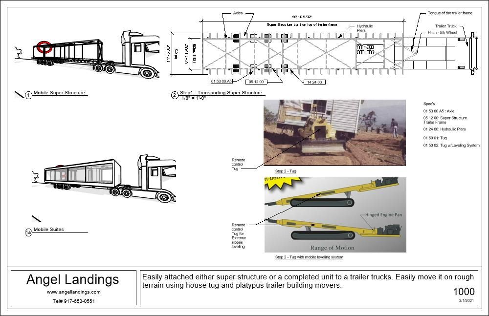 2. All super structures are completed on a factory floor and shipped by connecting the super structure tongue to the trailer truck 5thwheel hitch. Please note sufficient tongue weight capacity is required for stability when towing.